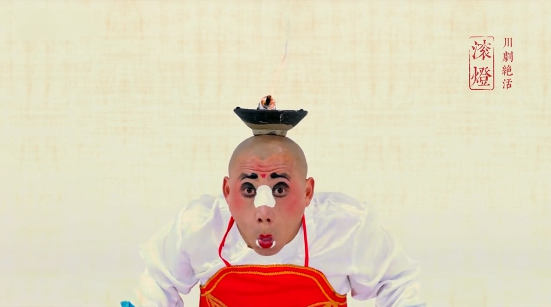解国强在剧场表演滚灯,迎合现代观众的趣味,表演两口子打情骂俏、老婆惩罚老公的故事。他演的丑角活灵活现,观众宛如在台下现场“吃瓜”,很有参与感。通过剧场的直播,他的表演“让世界各地的人都看到了川剧的趣味和魅力”。